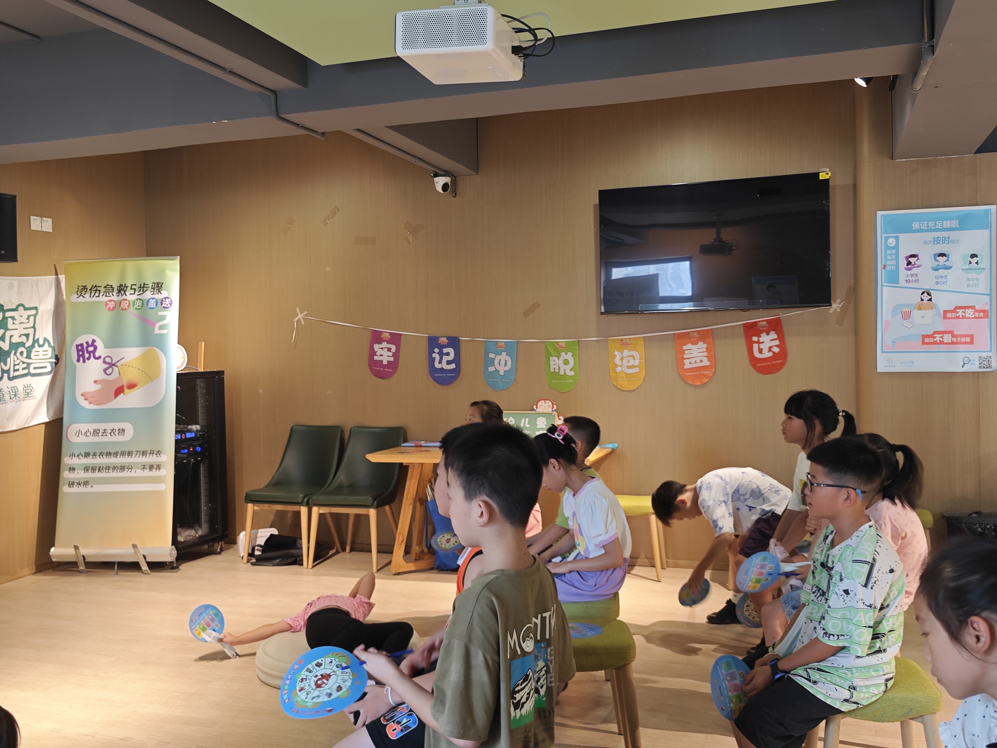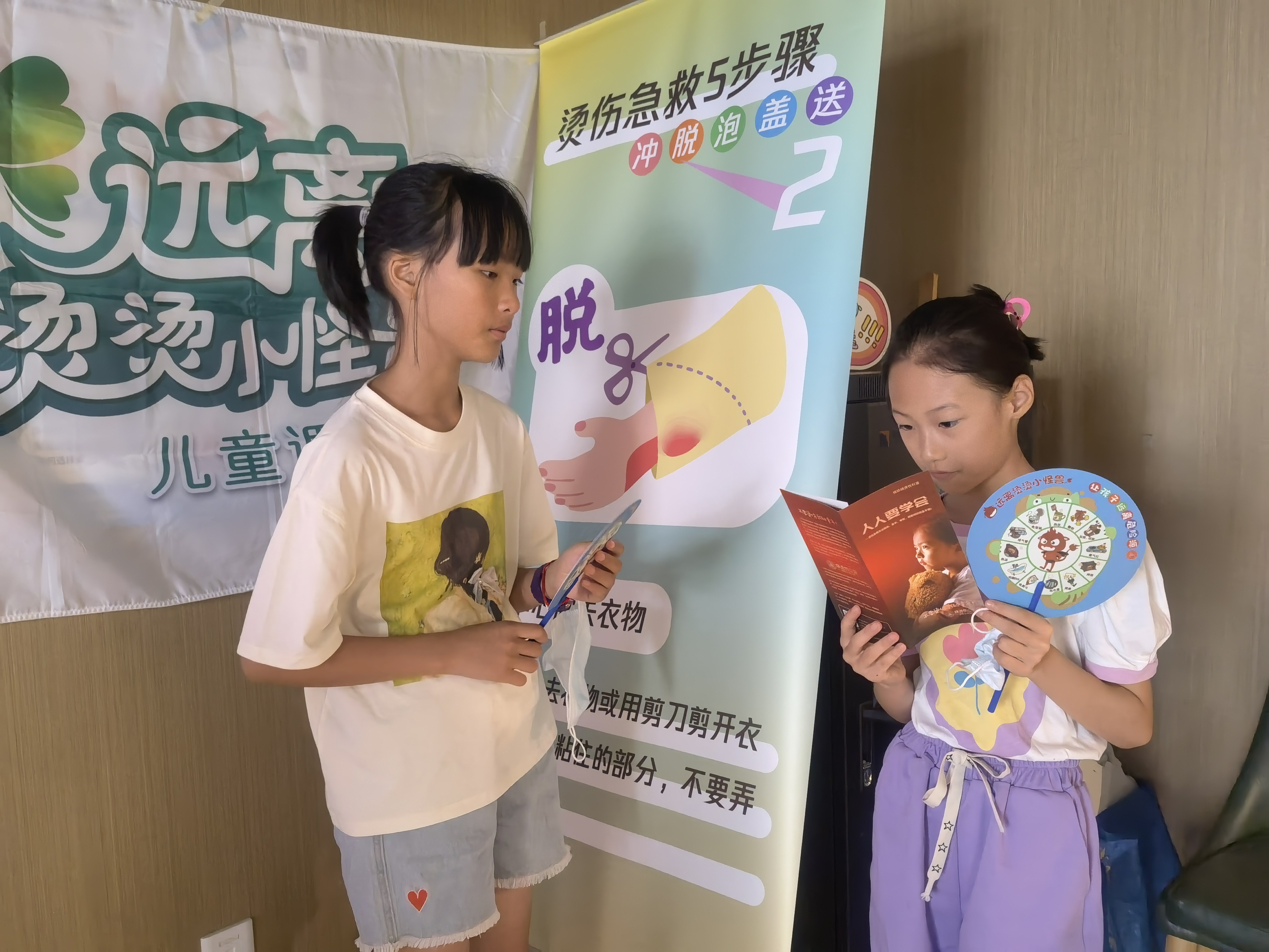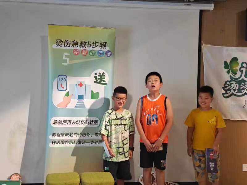 简介:为守护儿童安全成长,进一步提升社区少年儿童的预防烧烫伤意识,减少烧烫伤意外事故的发生,8月2日,安全讲师王文容联合锦城社区向社区20名儿童开展预防烧烫伤科普活动。 活动现场,儿童们还观看了科普动画片《皮皮的故事》,学了烫伤急救五步骤:“冲”、“脱”、“泡”、“盖”、“送”。进一步提高了儿童们预防烧烫伤的安全意识。活动中的“感温贴”科学小实验,当热水温度超过40℃时,感温贴上的“烫烫小怪兽”就会由黑色变成红色,提醒大家要注意温度的变化,小心烫伤。 今天的活动孩子们不仅自己学习了安全知识,大家为了能成为一名小小安全科普志愿者,还分小组进行了如何向家人和更多的小朋友去宣讲预防烧烫伤的练习。每个小组都积极努力熟悉专业知识和练习宣讲技巧,各小组用模拟宣讲向大家展示了自己小组的宣讲实力,活动的最后,儿童们还领到了安全绘本、给家长的一封信科普折页、烫伤急救五步骤科普小扇子以及感温贴和需要自己DIY的预防烧烫伤科普储蓄罐,儿童们表示会用这些物防物料向家人和更多的人宣传预防烧烫伤科普知识和烫伤急救五步骤的应急技能,我们期待着在社区种下的一颗颗小小安全科普志愿者的种子发芽。