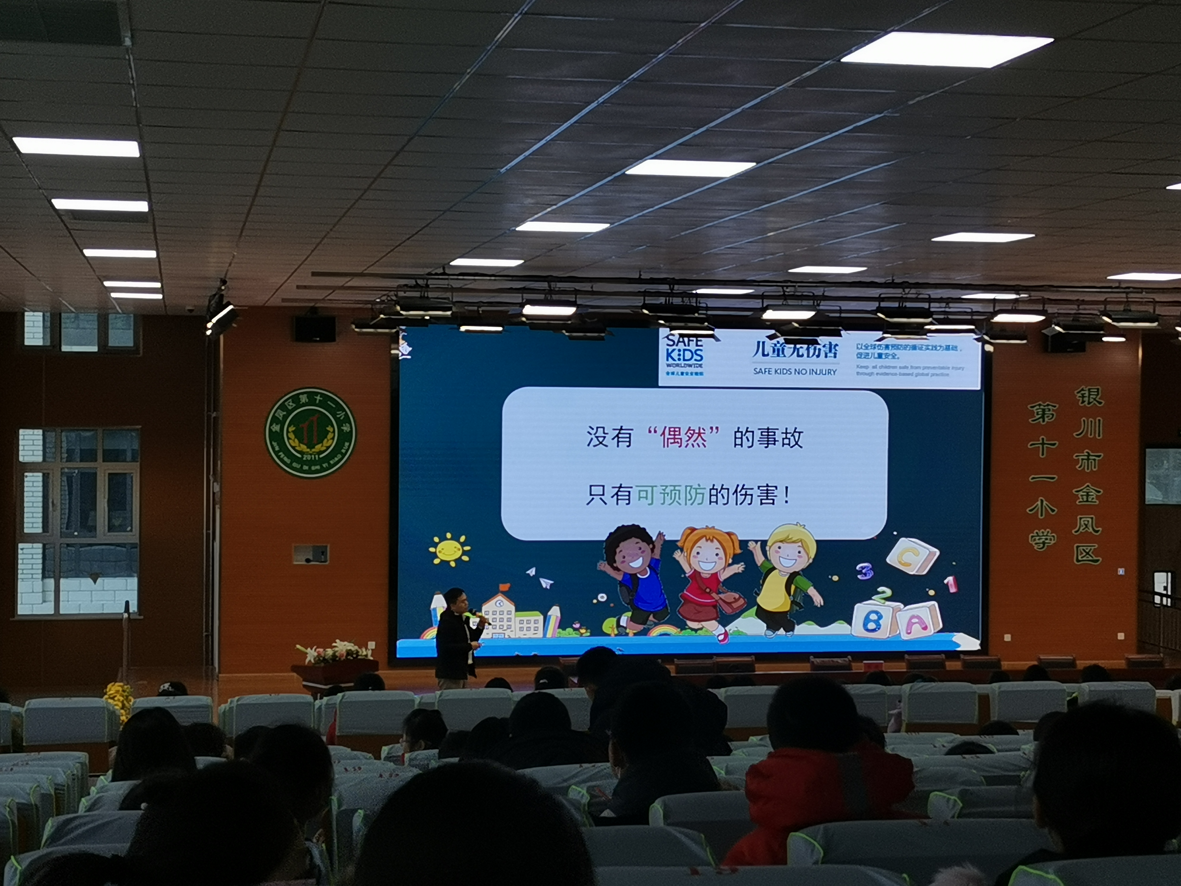 简介:与银川市金凤区检察院未成年人保护部门合作开展“安全课进校园”系列公益活动,为小学生及教师讲解伤害预防知识。