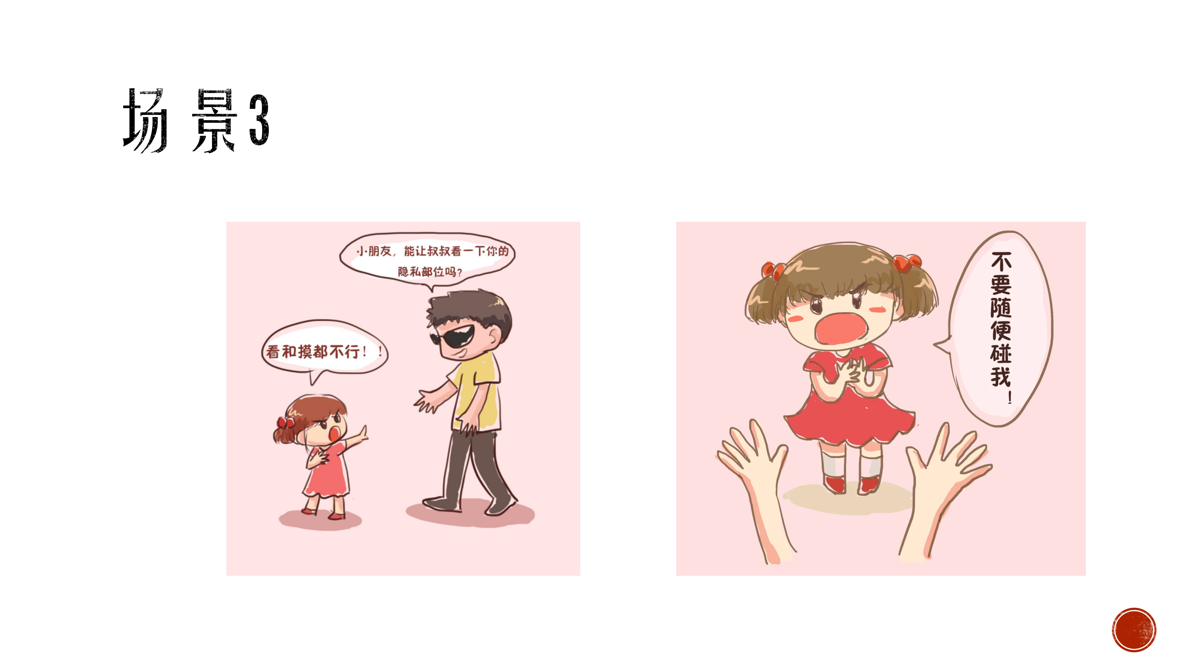 简介:儿童预防侵害与自我身体防护 儿童预防性侵害,了解自己的身体自己做主,尊重自己的感受。 生活中常见可能会存在冒犯和侵害的场景,了解坏人会是什么样的。