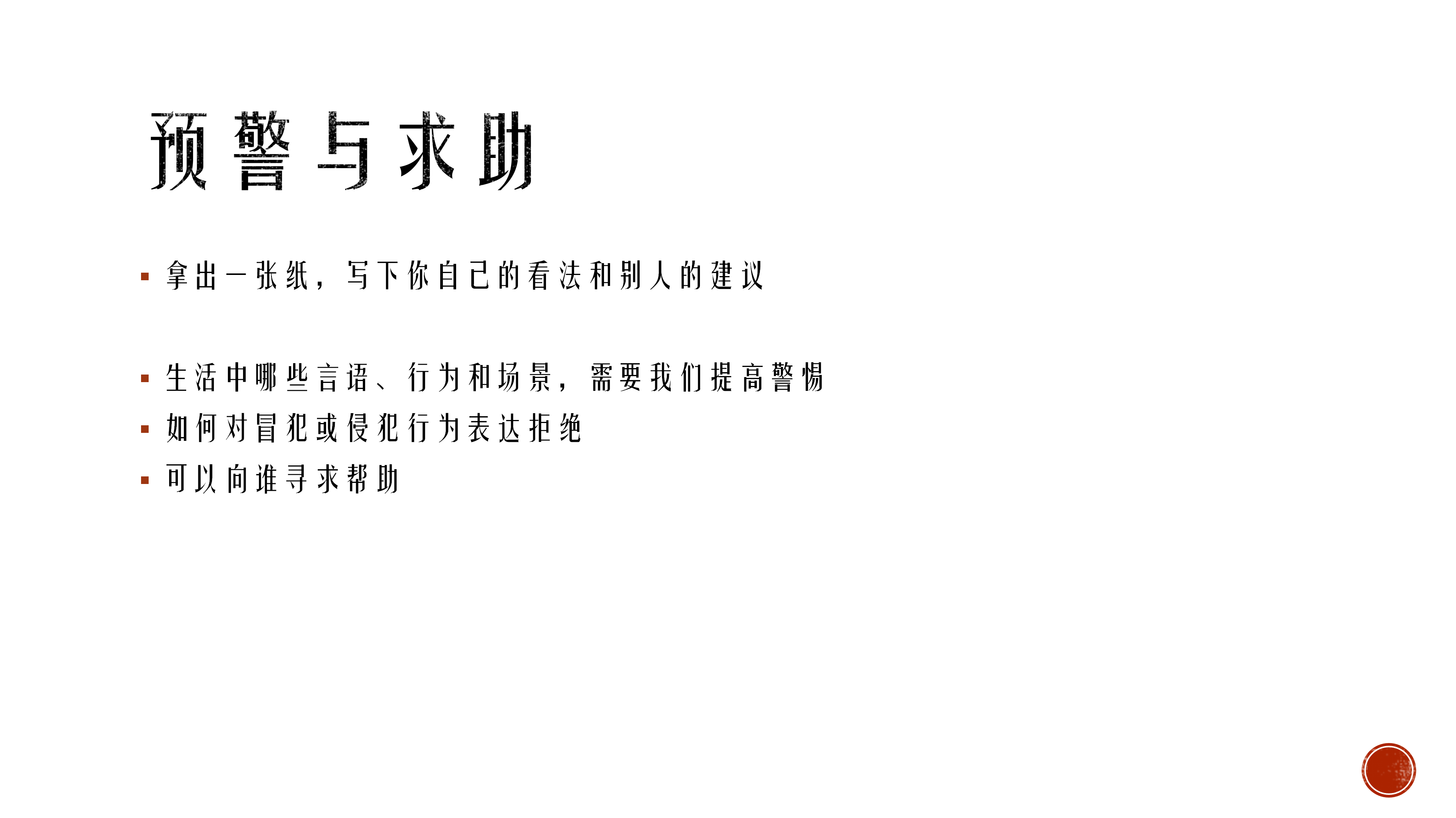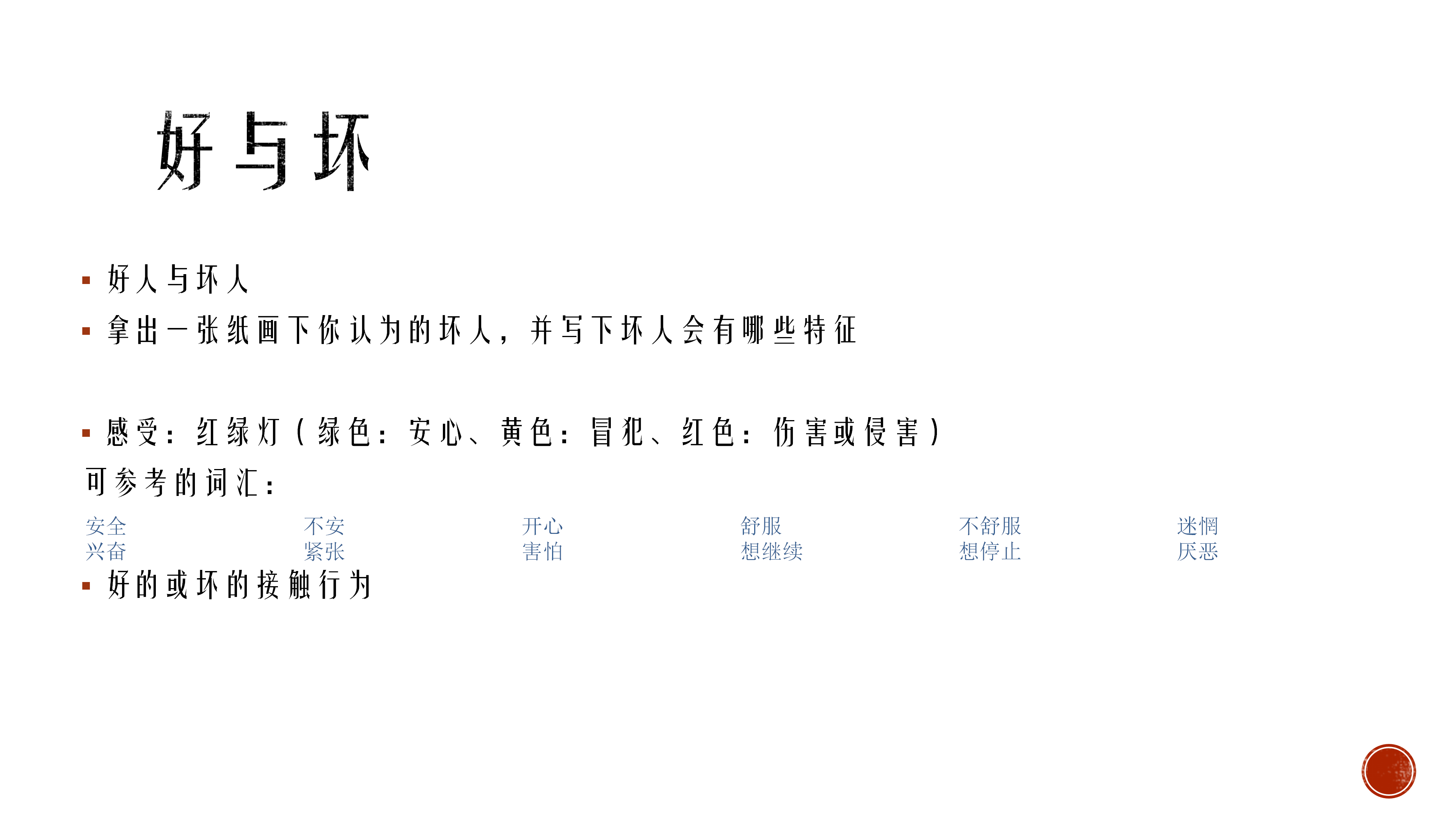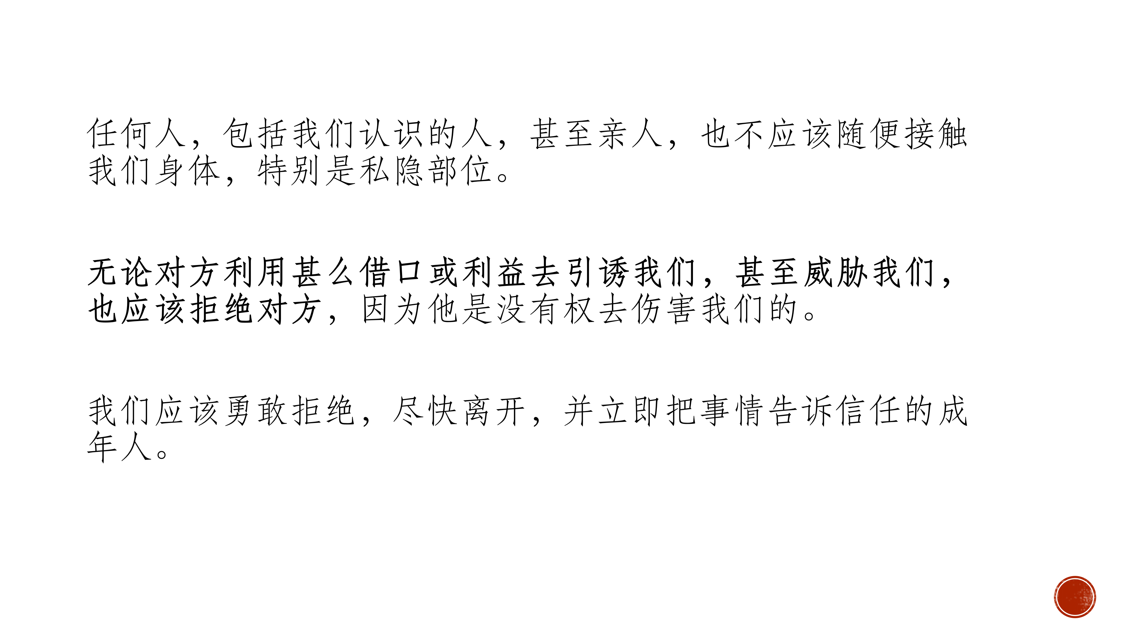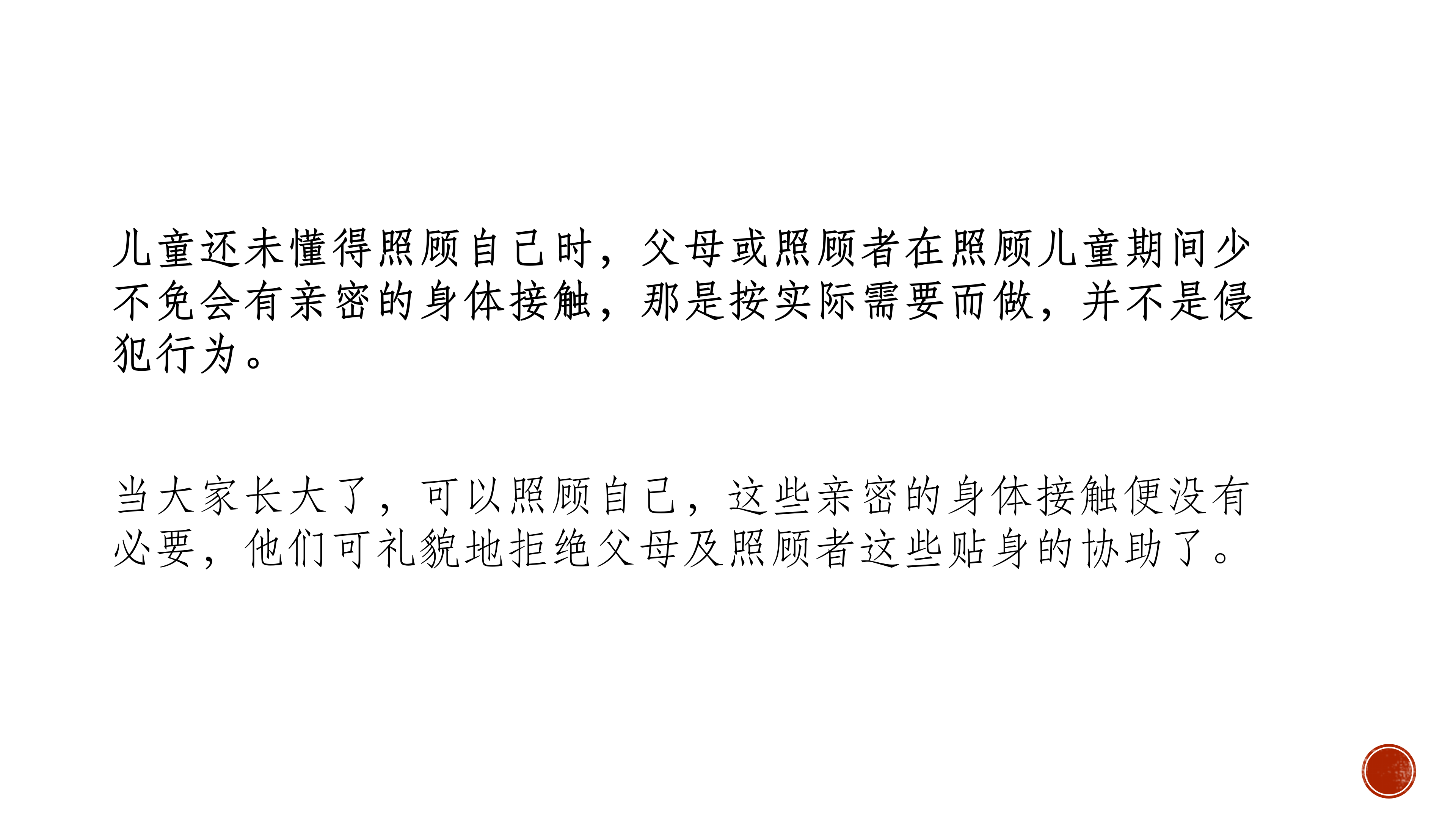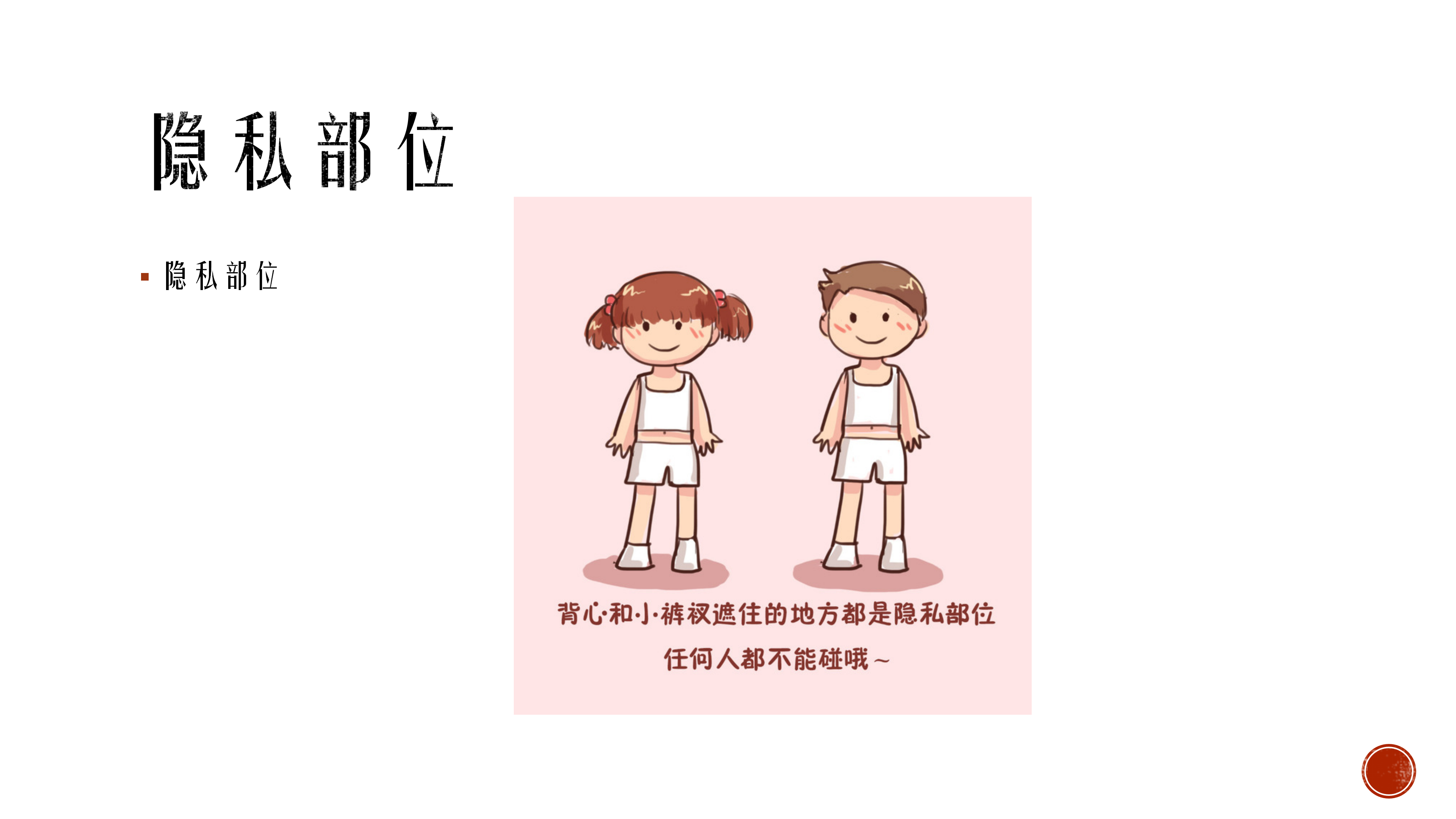 简介:儿童预防侵害与自我身体防护 儿童预防性侵害,了解自己的身体自己做主,尊重自己的感受。 生活中常见可能会存在冒犯和侵害的场景,了解坏人会是什么样的。