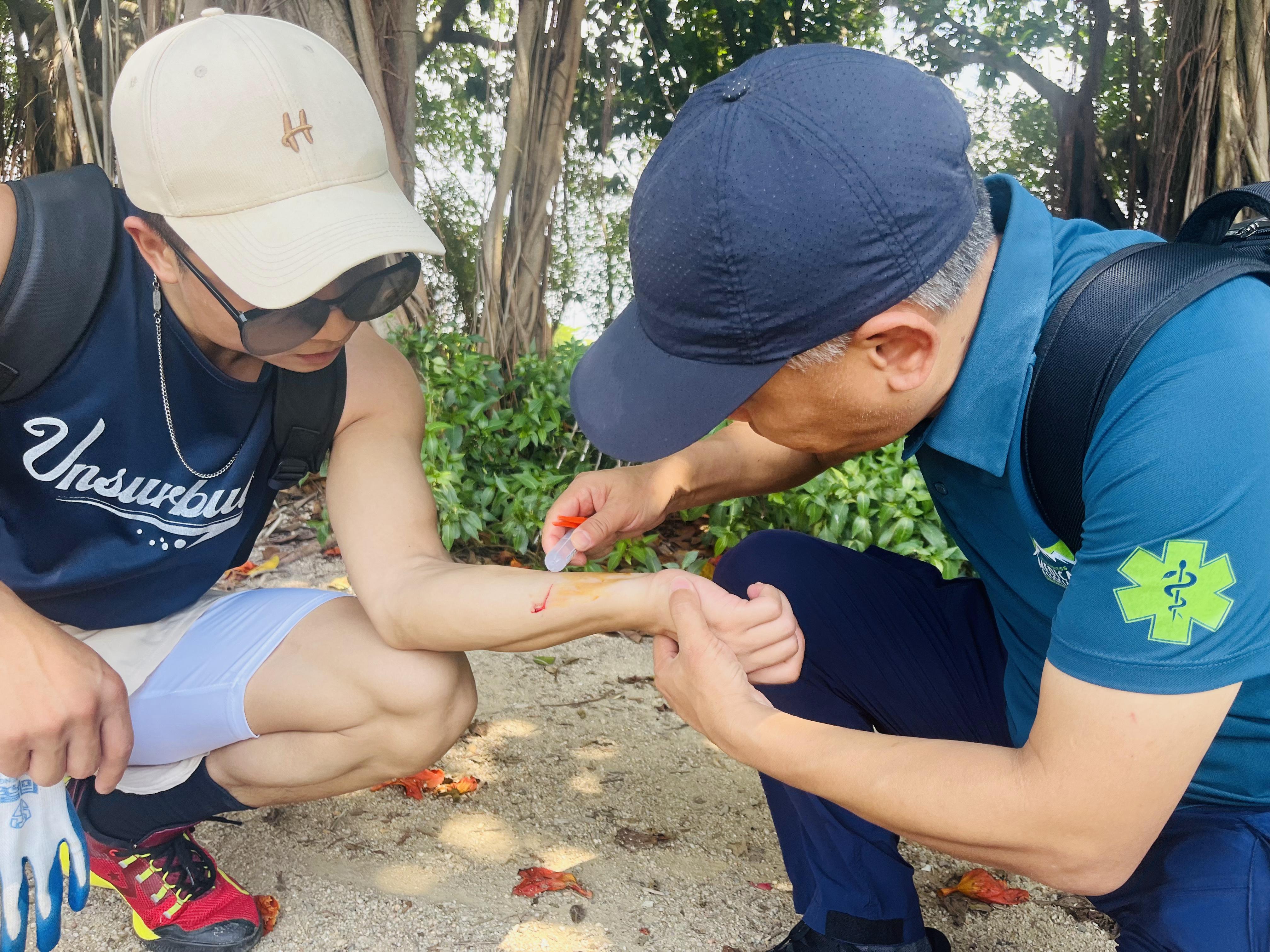 特邀请青少年体适能教练一起在户外活动环境交流如何在组织体育运动及户外活动中预防儿童受伤,并参与了沙滩上可能造成儿童伤害物资的清理,以及现场进行了一些简单外伤紧急处置的宣教